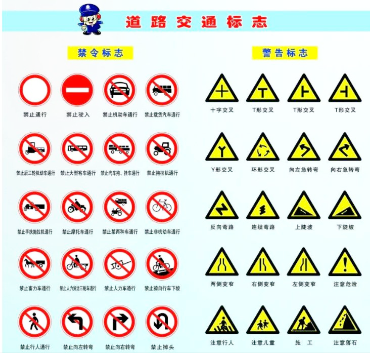 7、红色是禁令、黄色是警告、蓝色是指示,三种颜色都没有的是辅助;